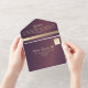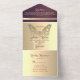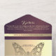 Una impresionante y lujosa invitación a una boda púrpura, con una romántica mariposa de oro falso, que representa un renacimiento espiritual, esperanza y vida. Esta moda y un diseño elegante encarnan tanto el encanto como el significado. Personalice los detalles de su boda y la información de RSVP para crear una experiencia memorable.
