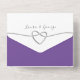 Invite a sus huéspedes a su día especial con esta elegante invitación de boda todo en uno con un fondo violeta moderno, un corazón romántico de cuerda plateada, caligrafía de moda, y una tarjeta de detalles a juego con el revestimiento. Perfecto para parejas de diseño que busquen un estilo boda atemporal y contemporáneo. Personalizar fácil con la información de su boda y una foto personal para un toque único y sincero. Por favor, tenga en cuenta que esta invitación "todo en uno" requiere un sobre separado para el envío de correo. Recomendamos emparejarlo con un sobre A9 estándar (5,75" x 8,75") para el mejor ajuste.