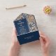 Invitación Todo En Uno Boda QR Code Classic de Art Nouveau azul