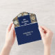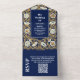 Invitación Todo En Uno Boda QR Code Classic de Art Nouveau azul