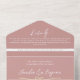 Celebra tu amor con esta minimalista y polvorienta invitación a una boda rosa con un romántico corazón de cuerda dorada y modernos nombres de caligrafía. Este elegante diseño todo en uno incluye detalles del boda, sección RSVP y dirección de retorno. Perfecto para moda, bodas románticos o de tono neutro con un toque de diseño. Personalizable completo para sus nombres, fecha y redacción. Por favor, tenga en cuenta que esta invitación "todo en uno" requiere un sobre separado para el envío de correo. Recomendamos emparejarlo con un sobre A9 estándar (5,75" x 8,75") para el mejor ajuste.