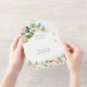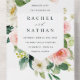 Todo ello en una tarjeta de invitación a la boda, con forma de hexágono rodeado de flores acuarelas pintadas en un follaje rosa, blanco y verde, una invitación a la boda con una postal rsvp para que los huéspedes la corten y la devuelvan. Para una personalización más avanzada de este diseño, haga clic en el enlace "personalizar más adelante". También están disponibles los elementos coincidentes.