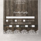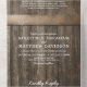 Una invitación de boda trifold rústica y chic de campo 3 en 1 que incluye un fondo de barril de madera rústica, luces de hadas, un diseño floral de aliento de bebé, su monograma, detalles de la boda, invitación de boda y una tarjeta postal de respuesta de comida para que sus invitados la arranquen y la devuelvan.