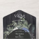 Elegante y rústica invitacion de boda con madera de granero negra, ramas de pino acuarela, bayas de enebro y flores, que incluye la información de la boda y tarjeta de respuesta que los invitados arrancan y envían. No se necesitan sobres. Colores negro, blanco, azul y tonos de verde. Ideal para una boda rústica, de invierno, otoño, boho, bosque o al aire libre.
