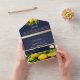 Captura la esencia de la elegancia rústica con nuestra invitación de boda de fruta de limón cítrico amarilla y azul marino todo en uno. El fondo clásico azul marino adornado con alegres frutas cítricas amarillas añade un toque de brillo a tu día especial. En la parte trasera, tus invitados encontrarán una hermosa foto de la pareja, acompañada de un sitio web y un código QR para una respuesta conveniente. Es la combinación perfecta de sofisticación y encanto, invitando a tus seres queridos a compartir la alegría de tu celebración de boda.