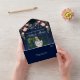 Invitación Todo En Uno Boda Rústica Floral Azul Madera Luces Encaje Foto