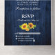 Invitación Todo En Uno Boda Rústico Blue Wood Sunflowers String Lights