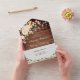 El Boda All in One Invitation está diseñado con una postal RSVP perforada fácil de desprender. Escribe tu dirección de invitado a mano en la parte posterior de la invitación doblada. Simplemente dobla cada tarjeta en la forma delineada y luego sella y envía (no hace falta un sobre).
