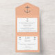 Invitación Todo En Uno Boda simple de ancla náutica | Peach