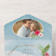 Anuncie su boda en la playa con estilo con nuestra tarjeta RSVP y la invitación a todo en uno de Flower Photo Beach Wedding. Nuestro hermoso diseño cuenta con flores tropicales y una foto de la pareja, creando un toque personalizado. La comodidad de esta opción todo en uno hará que planear a su boda sea una brisa.