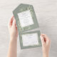 Invitación Todo En Uno Boda verde de monograma verde de salvia