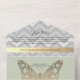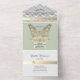 Elegante, moderno, sabio, verde y dorado Relieve metalizado invitación a la boda todo en uno con adorable y singular mariposa -símbolo de renacimiento espiritual, esperanza y vida. Agregue los detalles de su boda y rsvp.