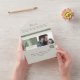Elegante, moderno, minimalista, sencillo, contemporáneo boda verde sabio todo en uno, con gigantescas iniciales en monograma, vegetación acuática y dos fotos de la pareja. Añade tus fotos, detalles del boda y rsvp.