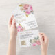 Invitación Todo En Uno Bodas de código QR floral de rosas rosadas suaves
