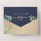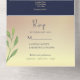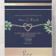 Celebra tu amor con esta elegante invitación de boda botánica en rosa dorado y azul marino, todo en uno. Con exuberante vegetación, toques de lujo en rosa dorado, un fondo azul marino profundo y una sección de fotos personalizable, esta invitación ecológica es perfecta para parejas que buscan un diseño sofisticado e inspirado en la naturaleza. Personaliza fácilmente con tus detalles.