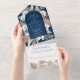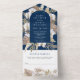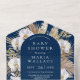Invitación Todo En Uno Boho Pampas Baby Shower azul de la Marina Orquídea