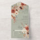 Invitación Todo En Uno Boho Peach & Rust Floral & Feather Green Dinner