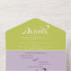 Invitación Todo En Uno Boho retro escritura púrpura verde elegante boda