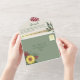 Celebra tu gran día con esta rústica invitación de bodas todo en uno con girasoles color agua, hojas rojas profundas y vegetación sobre un suave fondo beige. Este sello botánico y diseño de envío incluye espacio para detalles de RSVP y bodas, todo en una tarjeta plegable, ¡no se necesitan sobres! Perfecto para bodas de finales de verano o de otoño con temática de campo o jardín.