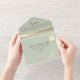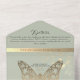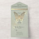 Una invitación a una boda de sabio bohemio verde y particular, adornada con una mariposa de oro falso y romántico, que simboliza la renovación espiritual, la esperanza y la vida. Este diseño elegante y significativo evoca encanto y gracia. Personalice los detalles de su boda y la información de RSVP para obtener un toque realmente especial.