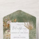 DISPONIBLE CON O SIN CÓDIGO QR O CON O SIN OPCIONES DE SELECCIÓN DE CENAS. Moderno y único, este diseño presenta un ramo de hierbas secas, flores y plantas a modo de boho sobre un suave fondo verde que ha estado angustiado con el oro del champán. Agregue un código QR a su invitación para que los visitantes puedan acceder rápidamente a su sitio Web boda para obtener detalles, direcciones, opciones de menú y más, o agregue la dirección URL Web del Registro de regalos. Las invitaciones todo en uno personalizadas son una combinación única de una invitación personalizado bien impresa y una postal RSVP fácil de desgarrar. ¡Y son tan fáciles de usar! Simplemente se pliega, después sella la solapa de atrás con los tres pegatinas claros incluidos y el correo. Y cuando sus invitados reciben la invitación de su personalizado, ¡simplemente sacan la tarjeta RSVP perforada y la envían de vuelta al correo!