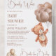 Invitación Todo En Uno Boho Teddy Bear Brown Globos Floral Baby Shower