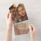 Invite a sus seres queridos con un toque de encanto bohemio y comodidad moderna. Esta plantilla de invitación para bodas todo en uno incluye arcos redondeados abstractos sobre un fondo marrón, marrón y terracota texturado. Personalizar el texto, agrega una foto, incluye un código QR, y agrega tu sitio web y correo electrónico para una simple y minimalista invitación de boda todo en uno. Perfecto para la pareja que busca un diseño de invitación único y funcional.