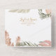 Este boho tropical botánico | sellar y enviar todo en una sola invitación es perfecto para su elegante boda rústico floral, verde, melocotón, oro rosa. El diseño presenta un marco dorado o un ramo con pasto rosa de pampas moderno, salvia simple, marfil, hojas de palmera de champán y vegetación clásica de la playa. Las flores pueden incluir rosa rosado y orquídea. El diseño es ideal para una elegante terracota vintage, beige, roya, invierno, primavera, boda otoño. Encontrará otro material de boda que coincida o coordine en el resto de la colección.