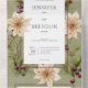 DISPONIBLE CON O SIN CÓDIGO QR O OPCIONES DE SELECCIÓN DE CENAS. Presentamos nuestra exquisita invitación a la boda que captura perfectamente el encanto de la elegancia rústica del boho. Esta invitación, elaborada con meticuloso cuidado de los detalles, ofrece una impresionante combinación de pino, bayas rojas, azulejo, poinsettias crema y un frondoso follaje verde sobre un suave fondo verde sabio. La pieza central de este diseño es una elegante caja de texto blanca, elegantemente rodeada por un delicado marco flotante en una suave y relajante sombra verde salada. Esta invitación combina sin esfuerzo elementos naturales con una estética refinada, creando un ambiente encantador para su día especial. Es un verdadero testimonio de la belleza de la naturaleza y del encanto atemporal del estilo bohemio. Captura corazones y marca el tono para una celebración inolvidable con esta encantadora invitación a la boda. Creado por Simply Farmhouse Press.