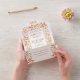 Presentando una invitación a la boda todo en uno de los naranjas quemados con una encantadora frontera de bayas y hojas. Este encantador diseño muestra un marco hecho de bayas y hojas, con los nombres y el texto en naranja quemado. Además, la tarjeta RSVP es desmontable, lo que permite una fácil extracción.