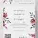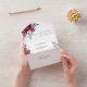 Personalizable blanco Todo En Una Invitación A La Boda. Cuenta con ramos de flores de color burdeos, carmín y marsala. Con una tarjeta RSVP para desprender la devolución que también incluye un práctico código QR que conecta a los invitados directamente a su sitio web boda. Para generar un nuevo código QR "único para usted", introduzca la dirección URL de su sitio web boda en el área que se proporciona en la característica " personalizar esta plantilla ". En el diseño aparecerá un nuevo código QR que enlazará directamente a tu sitio web boda escaneando el código QR con la cámara en un smartphone.