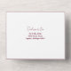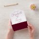 Esta minimalista invitación a una boda completa presenta una tipografía elegante con un fondo rojo burdeos. La invitación incluye una tarjeta RSVP perforada con el código QR de su sitio web boda. Diseñado por Thisisnotme©