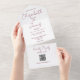 Invitación Todo En Uno Borgoña Red Elegant Script QR Code Boda