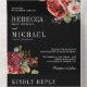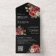 Invitación Todo En Uno Borgoña Roses Roses Floral Código QR Boda negro