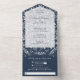 Invitación Todo En Uno Botánicos blancos sobre azul marino