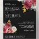 Invitación Todo En Uno Burgundy Red Roses Floral QR Code Black Wedding