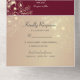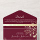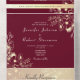Esta invitación de boda vintage todo en uno combina tonos burgundy profundos con ilustraciones florales doradas elegantes para un look clásico y romántico. Diseñada con una sección de RSVP integrada, campo para sitio web de boda y espacio para una dirección de devolución y foto en la parte posterior, esta invitación ecológica ofrece tanto belleza atemporal como funcionalidad moderna. Tenga en cuenta: se requiere un sobre separado para el envío.