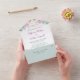 Estas invitaciones nupciales presentan un moderno diseño de acuarela floral con suculentos, cactus, flores y luces de cuerdas. Personaliza tu texto. También se dispone de material de papelería de correspondencia.