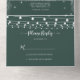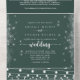 Este rústico boda de hilo luce caligrafía verde en una sola invitación, es perfecto para un boda clásico. El diseño está decorado con bonitas luces de cuerda pintadas a mano con espléndidas estrellas de fondo verde. Guarde el papel incluyendo más detalles en la invitación en lugar de en una tarjeta separada.