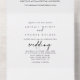 Esta caligrafía moderna y elegante boda, todo en una sola invitación, es perfecto para un boda rústico. El diseño, sencillo y elegante, presenta una tipografía de escritura clásica y elegante en blanco y negro.