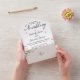 El Romántico Calligraphy & Whimsical Floral All-In-One Wedding Invitation es la combinación perfecta de elegancia y comodidad. Con delicados acentos florales y un guión romántico, este encantador conjunto de invitaciones incluye todo lo que necesita (una invitación, tarjeta RSVP y detalles) todo en un diseño sin fisuras. Los florales caprichosos le dan un toque de encanto, mientras que la caligrafía le da un aire atemporal. Ideal para las parejas que desean una solución elegante e inclusiva, esta invitación marca el tono para un día mágico de boda con gracia y sencillez.