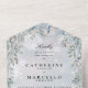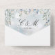 La invitación de boda de invierno todo en uno presenta una hermosa cascada de vegetación floral, tipografía dorada elegante y monogramas iniciales sobre un fondo de copos de nieve. La invitación incluye una tarjeta de respuesta perforada que se puede dirigir individualmente o dejar en blanco para que usted escriba a mano los detalles de la dirección de sus invitados. Diseñado por Thisisnotme