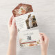 Disfrute de la cálida belleza del otoño con esta rústica invitación a la boda todo en uno con flores de terracota. Con elegantes flores de otoño, un inserto de fotos y un conveniente diseño ecológico que hace las veces de envoltorio, esta invitación es perfecta para su acogedora celebración de otoño. Personalizar con sus detalles para una conservación memorable.