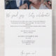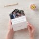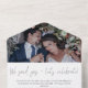 ¿Se casaron en una pequeña ceremonia? ¡No te pierdas la fiesta después de la boda con amigos y familiares! Esta invitación post-boda presenta su foto de boda favorita en la parte superior, un mensaje personal, fecha y ubicación para su fiesta de boda y una tarjeta de respuesta pre-dirigida que incluye la elección de comida para sus invitados. Una invitación post-boda moderna con una tipografía simple, texto negro moderno sobre un fondo blanco