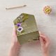 DISPONIBLE CON O SIN CÓDIGO QR O CON O SIN OPCIONES DE SELECCIÓN DE CENAS. Este diseño presenta un fondo verde sabio con un hermoso spray lateral floral de lavanda, blanco, verde y perwinkle. Creado por Simply Farmhouse Press.