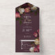 Invitación Todo En Uno Cena Moody Rosa Borgoña y Peonies Crema