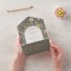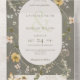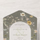 DISPONIBLE CON O SIN CÓDIGO QR. Este diseño presenta un marco de flores silvestres blandas alrededor de un óvalo crema sobre un fondo verde esmeralda. Las invitaciones todo en uno personalizadas son una combinación única de una invitación personalizado bien impresa y una postal RSVP fácil de desgarrar. ¡Y son tan fáciles de usar! Simplemente se pliega, después sella la solapa de atrás con los tres pegatinas claros incluidos y el correo. Y cuando sus invitados reciben la invitación de su personalizado, ¡simplemente sacan la tarjeta RSVP perforada y la envían de vuelta al correo!