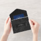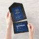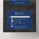 Invitación Todo En Uno Cena satinada gótica negra y floral azul oscuro