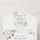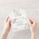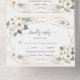 TODO EN UNA invitación. Al incluir los detalles y el RSVP en la invitación a la boda en lugar de en una carta separada, es una buena elección. Diseño único de cartas con rosas silvestres de color blanco acuático, hojas ventiladas, forma de oro falso, caligrafía moderna, sobre un fondo blanco. Utilice la herramienta Personalize para agregar su información. Para ver elementos coincidentes, por favor, visite mi Delicada colección de Flores Blancas.
