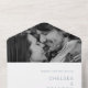 Invitación moderna Todo en una boda con un diseño sencillo y minimalista con los detalles de su boda en alineación con la foto favorita en la parte superior. Todos los elementos de diseño están en azul polvoriento y pueden cambiarse en la herramienta de edición de diseño. Esta moda "sellar y enviar" todo en una sola invitación a la boda con un diseño minimalista y elegante va bien con cualquier estilo de boda contemporáneo.
